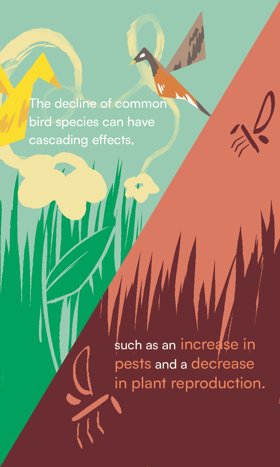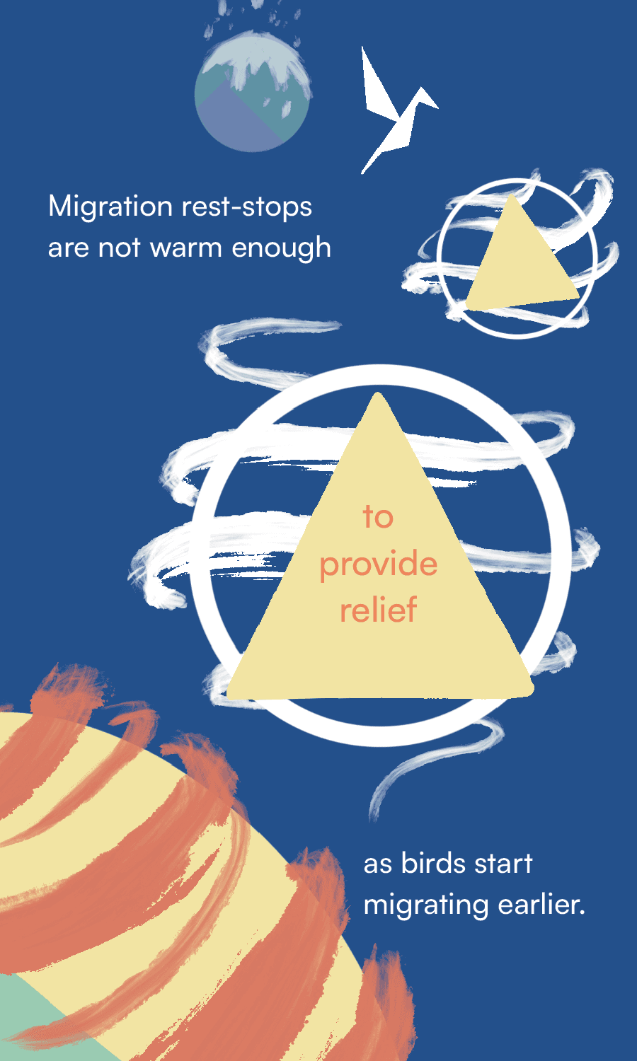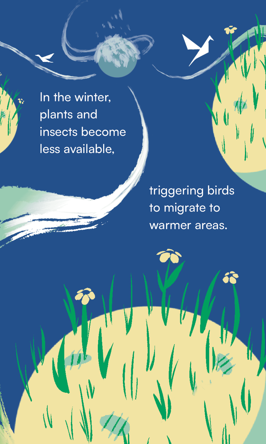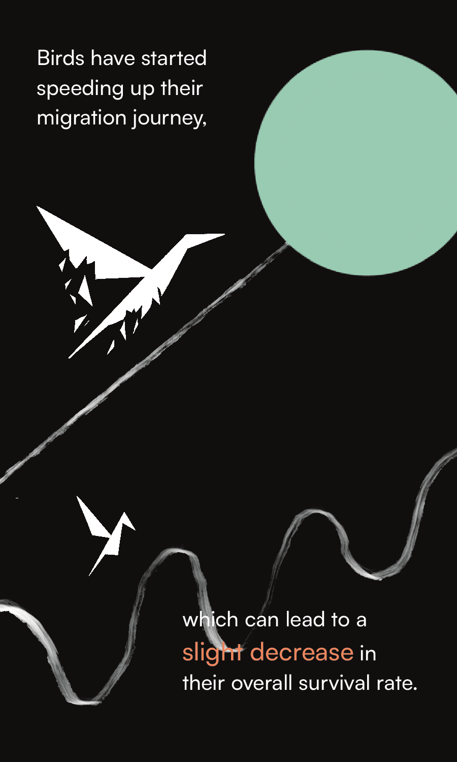 An illustrated card catalog, visualizing the issues of climate change and its disruption of North American long-distance migratory birds. Using data from various published sources*, I created 15 cards communicating various facts about the negative consequences of rising temperatures delaying these birds' migratory patterns.